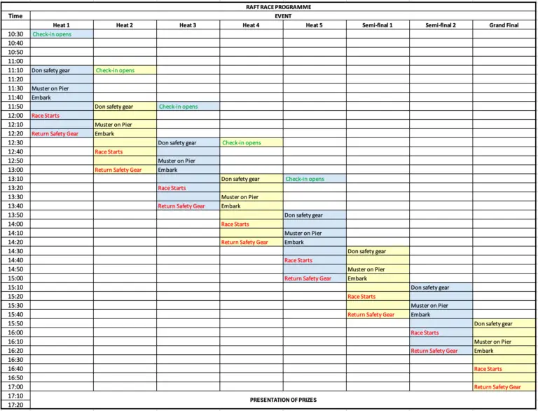 Detailed Schedule for Rafting Teams